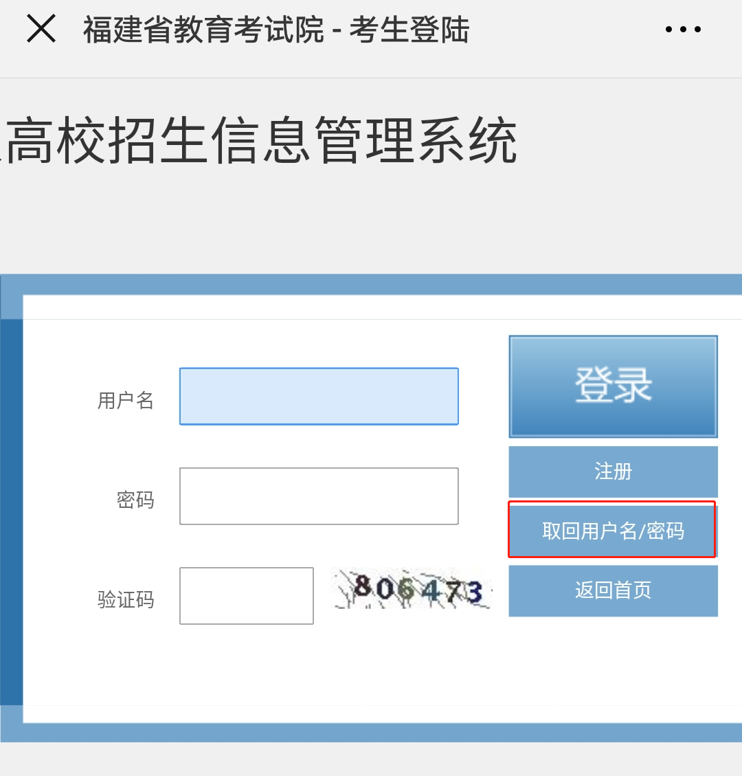 3、 依次輸入自己的用戶名、密碼及驗證碼,如果忘記用戶名或密碼,請點擊右側紅線框起來的部分