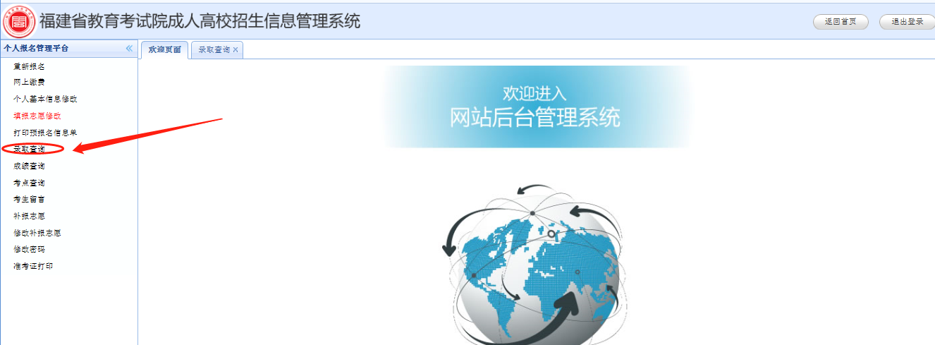 三、進(jìn)入信息平臺(tái),選擇“錄取查詢(xún)”