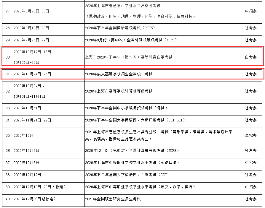【導(dǎo)讀】福建成考網(wǎng)分享“2020年福建成人高考考試時間公布!”相關(guān)資訊。根據(jù)根據(jù)上海教育考試院發(fā)布的《2020年度上海市教育考試院各類考試信息一覽表》獲悉,2020年成人高考考試時間確定為10月24日-25日!