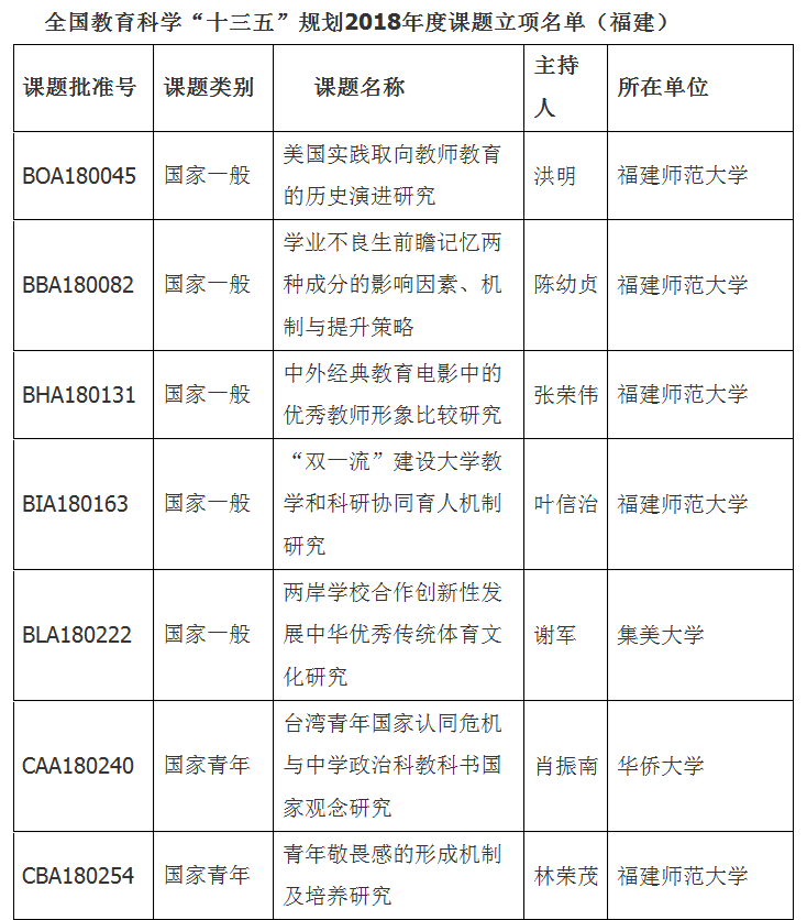 轉載請注明:文章轉載自 其它本文關鍵詞: 全國教育科學 立項名單 福建