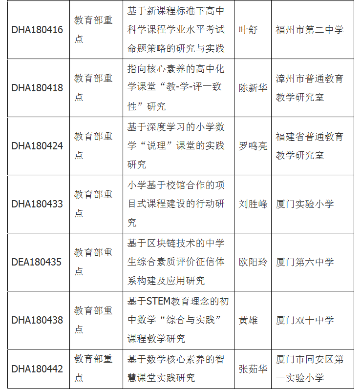 其中,值得注意的是,全國中小學教師系列(含中職、幼兒園)教育部重點課題40項左右,我省獲得9項,立項比例在全國名列前茅,其研究方向既有中小學學科教學,也有課程建設、評價體系,緊扣當前核心素養、特色課程實踐、教材開發等主題研究,具有重要的現實意義。