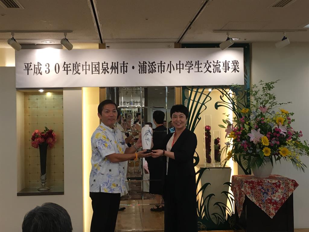 7月17日代表團全體成員拜會了浦添市政府,受到了浦添市政府官員的熱烈歡迎,浦添市市長松本哲治親切會見了代表團全體成員,并發表了熱情洋溢的講話。浦添市政府對交流活動進行了精心策劃,突顯了“友誼·分享·生態”交流主題。短短幾天,代表團訪問了浦添市內間小學,與當地學生體驗課程并共進午餐,共同整理衛生,并分別到結隊伙伴家庭進行交流,一起種下了象征和平友誼之樹,此外代表團還參訪了浦添王陵、美術館等。在與當地學生同臺表演節目的過程中,我市學生表演了獨具閩南特色的合唱《藍藍泉州灣》、單簧管獨奏《天空之城》、群舞《回家》、五祖拳操、書法、國畫交流、葫蘆絲演奏《月光下的鳳尾竹》等節目,體現了中國的傳統文化特色,彰顯了泉州學生良好的精神風貌和綜合素質,受到日本師生的滿堂喝彩和良好評價。