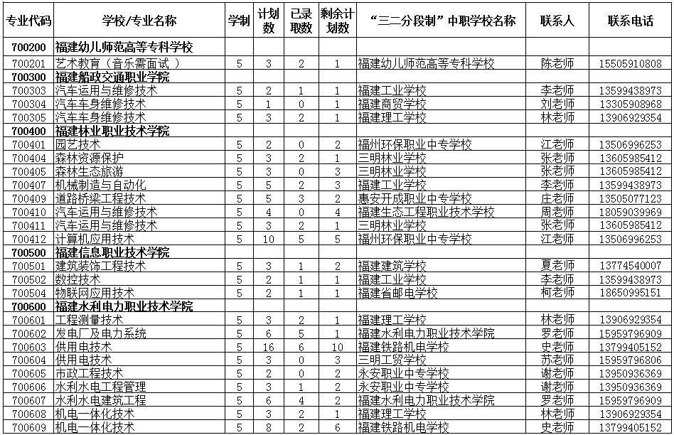 2.報(bào)名辦法:上述對(duì)象根據(jù)五年制高職剩余招生計(jì)劃,直接與相關(guān)學(xué)校聯(lián)系招生事宜(具體聯(lián)系方式詳見(jiàn)附表)。