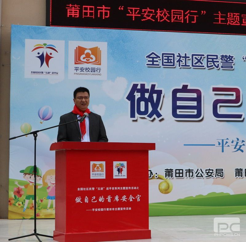 市公安局副局長柳建中在致辭中指出,近年來,全市公安機關以平安校園創建為載體圍繞平安莆田、法制莆田建設戰略部署,扎實推進法制進校園活動,有效落實校園安防工作常態化工作。公安機關將繼續充分發揮職能優勢,創新安全教育形式,廣泛開展安全宣傳,切實加強和創新校園及周邊治安治理,推動建立共建共治共享格局,努力為美麗校園構筑平安屏障,提供安全保障。