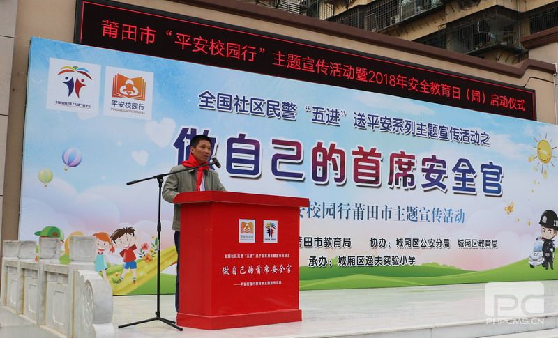為進一步加強校園安全教育,提高師生法治意識、安全防范意識和自我防護能力,3月26日,市教育局、市公安局聯合在城廂區逸夫實驗小學舉行“做自己的首席安全官——平安校園行莆田市主題宣傳活動”啟動儀式。